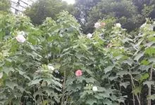 木芙蓉,锦葵科木槿属落叶灌木或小乔木。小枝上有细绒毛;叶片为卵状心形,托叶为披针形,常早落;花单生,花萼为钟形,花冠初为白色或淡红色,后逐渐变为深红色;果实为扁球形,有淡黄色的毛附着。花期8到10月。…全部>>