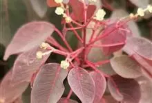 肖黄栌,紫锦木为灌木,叶染褐红色,作为观叶植物极似漆树科黄栌,故名肖黄栌。其实只需折断枝叶见流乳白汁,此乃大戟科许多种类的特征,足以分辨。全部>>