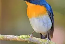 山蓝仙鹟:小型鸟类,体长13-15厘米。雄鸟额基和眼先黑色,颏橙棕色,仅颏尖为蓝黑色,喉、胸、上腹和两胁亦为橙棕色,下体白色范围较小,仅局限于下腹和尾下覆羽。雌鸟上体少黄色,颏、喉、胸概为锈红色,…全部>>