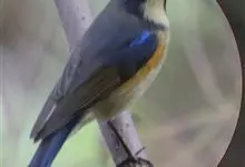 山蓝仙鹟:小型鸟类,体长13-15厘米。雄鸟额基和眼先黑色,颏橙棕色,仅颏尖为蓝黑色,喉、胸、上腹和两胁亦为橙棕色,下体白色范围较小,仅局限于下腹和尾下覆羽。雌鸟上体少黄色,颏、喉、胸概为锈红色,…全部>>