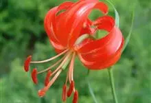山丹是百合科百合属的多年生草本植物。鳞茎卵形或圆锥形,鳞片长圆形或长卵形,白色;叶散生茎中部,线形,边缘有乳头状突起;花单生或数朵成总状花序,花鲜红色,常无斑点,花被片反卷,…全部>>