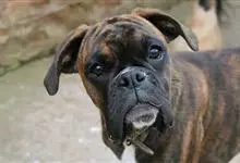 拳师犬是食肉目犬科犬属哺乳动物,又称德国拳师犬。眼大小中等,琥珀色,眼眶为暗色;鼻子宽,黑色,鼻孔大,鼻子上有一条线;下颚比上颚突出,稍微向上弯曲;耳薄,耳根高,休息时耳朵平躺在头上,…全部>>