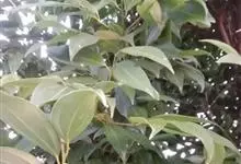 天竺桂,是樟科樟属乔木植物,枝条细弱呈圆柱形,无毛;叶近对生或在枝条上部互生,呈卵圆状长圆形或披针形,上面绿色,下面灰绿色;花序梗与序轴均无毛,花被片呈卵形;果长圆形,…全部>>
