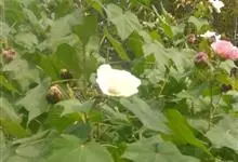 木芙蓉,锦葵科木槿属落叶灌木或小乔木。小枝上有细绒毛;叶片为卵状心形,托叶为披针形,常早落;花单生,花萼为钟形,花冠初为白色或淡红色,后逐渐变为深红色;果实为扁球形,有淡黄色的毛附着。花期8到10月。…全部>>