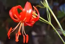 山丹是百合科百合属的多年生草本植物。鳞茎卵形或圆锥形,鳞片长圆形或长卵形,白色;叶散生茎中部,线形,边缘有乳头状突起;花单生或数朵成总状花序,花鲜红色,常无斑点,花被片反卷,…全部>>