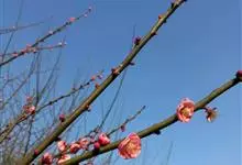 宫粉梅 Rehd.)是蔷薇科、李属植物,梅花品系中真梅系直枝梅类宫粉型,其花复瓣至重瓣,呈或深或浅的红色。落叶乔木,高达10米。树干褐紫色,有纵驳纹,小枝细而无毛,多为绿色。叶广卵形至卵形,…全部>>