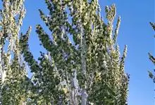 新疆杨是杨柳科、杨属的落叶乔木树,高可达35米,胸径可达1米;树冠窄圆柱形或尖塔形;树皮为灰白或青灰色,光滑少裂;萌条和长枝叶掌状深裂,基部平截;叶柄侧扁或近圆柱形,披白绒毛;花序轴有毛,雌蕊具短柄,…全部>>