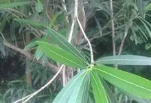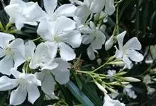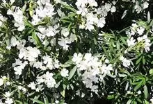 白花夹竹桃是夹竹桃科、夹竹桃属植物夹竹桃的栽培品种。常绿直立大灌木,枝条灰绿色;嫩枝条具稜,被微毛,老时毛脱落。叶3-4枚轮生,下枝为对生,叶面深绿,叶背浅绿色;侧脉纤细平行与中脉成直角;叶柄扁平,…全部>>