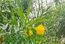 黄花夹竹桃K. Schum.),又名“酒杯花”“柳木子”“黄花状元竹”,是夹竹桃科,黄花夹竹桃属下的常绿乔木植物。高达5m,全株无毛,树皮棕褐色;叶互生,近革质,线形或线状披针形;花大,黄色,具香味,…全部>>