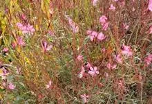 山桃草是柳叶菜科、山桃草属植物。多年生宿根草本。高60-100厘米,叶无柄,椭圆状披针形或倒披针形,花期晚春至初秋;多花型,花蕾白色略带粉红,初花白色,谢花时浅粉红。花紫红色,成密生的穗状花序,…全部>>