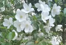 山荆子 Borkh.):为落叶乔木,树高可达4-5米,最高可达10米以上。灰褐色,光滑,不易开裂。新梢黄褐色,无毛。嫩梢绿色微带红褐。叶片椭圆形,先端渐尖,基部楔形,叶缘锯齿细锐。伞形总状花序。花白色,…全部>>