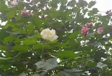木芙蓉,锦葵科木槿属落叶灌木或小乔木。小枝上有细绒毛;叶片为卵状心形,托叶为披针形,常早落;花单生,花萼为钟形,花冠初为白色或淡红色,后逐渐变为深红色;果实为扁球形,有淡黄色的毛附着。花期8到10月。…全部>>