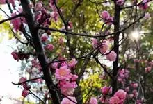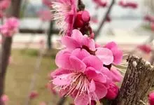 宫粉梅 Rehd.)是蔷薇科、李属植物,梅花品系中真梅系直枝梅类宫粉型,其花复瓣至重瓣,呈或深或浅的红色。落叶乔木,高达10米。树干褐紫色,有纵驳纹,小枝细而无毛,多为绿色。叶广卵形至卵形,…全部>>