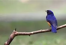 棕腹大仙鹟:体重24-28克,体长15-17厘米,是一种小型的色彩亮丽的鹟。雄鸟上体深蓝,下体棕色,脸黑,额、颈侧小块斑、翼角及腰部亮丽闪辉蓝色。与棕腹仙鹟易混淆,区别在色彩较暗。雌鸟灰褐,…全部>>