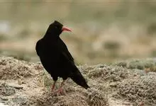 红嘴山鸦,是脊索动物门鸟纲雀形目鸦科鸟类。红嘴山鸦的成鸟通体羽毛纯黑色具有蓝色金属光泽,翼和尾泛有蓝绿色金属光泽;虹膜暗褐色,喙较为尖细,并且呈镰状下弯,喙和脚朱红色。…全部>>