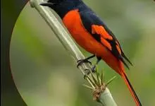 灰喉山椒鸟:共有8个亚种。体长18-22厘米。雄鸟头部和背亮黑色,腰、尾上覆羽和下体朱红色,翅黑色具一大一小的两道朱红色翼斑。中央尾羽黑色,外侧尾羽基部黑色,端部红色。…全部>>