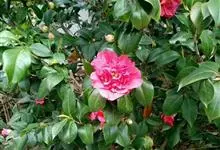 滇山茶:灌木至小乔木,有时高达15米,嫩枝无毛。叶阔椭圆形,上面干后深绿色,发亮,下面深褐色,无毛,侧脉6-7对,边缘有细锯齿。花顶生,红色,直径10厘米,无柄;苞片及萼片10-11片,花瓣红色,…全部>>