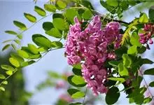 红花刺槐是豆科刺槐属的植物。其干皮深纵裂;枝具托叶刺,羽状复叶互生,叶片卵形或长圆形,具芒尖;基部圆形。花两性;总花序下垂;花冠粉红色,芳香;果条状长圆形,腹缝有窄翅。花期4~5月,果期9~10月。…全部>>