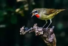 红胁蓝尾鸲俗名:蓝点冈子、蓝尾巴根子、蓝尾杰、蓝尾欧鸲。体型略小而喉白的鸲。特征为橘黄色两胁与白色腹部及臀成对比。雄鸟上体蓝色,眉纹白;亚成鸟及雌鸟褐色,尾蓝。…全部>>