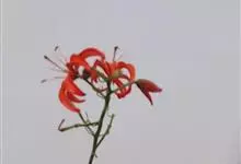 山丹是百合科百合属的多年生草本植物。鳞茎卵形或圆锥形,鳞片长圆形或长卵形,白色;叶散生茎中部,线形,边缘有乳头状突起;花单生或数朵成总状花序,花鲜红色,常无斑点,花被片反卷,…全部>>