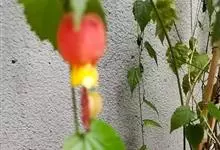 红萼苘麻是锦葵科、苘麻属常绿软木质灌木,叶绿色,长5-10厘米,心形,叶端尖,叶缘有钝锯齿,有时分裂,有细细的叶柄;叶互生,掌状叶脉;花单生于叶腋,具长梗,下垂;花萼红色,半套着大约4厘米长的花瓣,…全部>>
