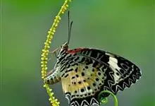 优红蛱蝶:翼展4.5-12厘米。是一种美丽的蝴蝶。色彩鲜艳,花纹相当复杂。前足相当退化,短小无爪。前翅R脉5条,常共柄。卵呈半圆球形。幼虫头上常有突起,体节上有枝刺,腹足趾钩1至3序中列式。蛹为垂蛹。全部>>