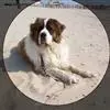 圣伯纳犬,别名巴里汉德,属于大型工作犬,肩高约65~90厘米,体重约50~90千克。圣伯纳犬身体强壮,被毛红褐色和白色相间,头圆而宽大。颈部强壮,胸宽深,背直。前肢长直,腕关节略前倾,后肢腿骨粗壮,…全部>>