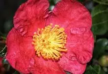 山茶,别名洋茶、茶花、晚山茶等,为山茶科山茶属的一种灌木或小乔木植物。其叶革质,椭圆形,无毛,下面浅绿色,无毛,叶柄无毛;花顶生,红色,无柄;花瓣6-7片,外侧2片近圆形,离生,被毛,…全部>>