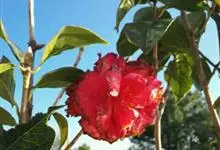 滇山茶:灌木至小乔木,有时高达15米,嫩枝无毛。叶阔椭圆形,上面干后深绿色,发亮,下面深褐色,无毛,侧脉6-7对,边缘有细锯齿。花顶生,红色,直径10厘米,无柄;苞片及萼片10-11片,花瓣红色,…全部>>