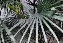 细叶棕竹,灌木,茎细如竹,多数聚生,有网状叶鞘。叶半圆形,掌状深裂,裂片狭长,阔线形,软垂,裂片7-20枚,叶柄无刺。全部>>
