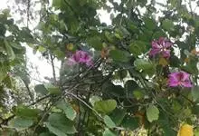 羊蹄甲,别名紫花羊蹄甲、玲甲花,是豆科羊蹄甲属的一种常绿乔木或灌木。树冠开展,枝桠低垂;树皮灰色至暗褐色,近光滑。枝幼时微被灰色短柔毛,后毛脱落;叶硬纸质,近圆形,基部浅心形,…全部>>