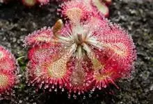 茅膏菜茅膏菜科茅膏菜属多年生草本植物,高32厘米。鳞茎状球茎紫色地上常直无毛,茎顶多分枝;基生叶密集成近一轮,叶片半月形;聚伞花序生于枝顶,白色或红色,种子椭圆形;花果期6-9月。茅膏菜为变种,…全部>>