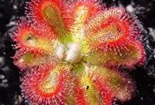 茅膏菜茅膏菜科茅膏菜属多年生草本植物,高32厘米。鳞茎状球茎紫色地上常直无毛,茎顶多分枝;基生叶密集成近一轮,叶片半月形;聚伞花序生于枝顶,白色或红色,种子椭圆形;花果期6-9月。茅膏菜为变种,…全部>>