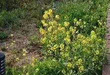 芥菜 Czern.),十字花科芸苔属一年生草本植物。直立多分枝,基生叶倒卵形或宽卵形,顶端钝,基部楔形;总状花序顶生,花黄色;萼片淡黄色,直立开展;花瓣倒卵形;角果线形;种子球形,褐色。花期3~5月,…全部>>