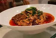 酱扒茄子是一道特色传统佳肴。因为大酱里有淀粉、茄子上也有淀粉,所以最后不用水淀粉勾芡,汤汁也很浓稠;蒜一定要分两次放,特别是最后放的蒜末可谓是给这道菜起了画龙点睛的作用。全部>>