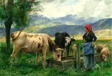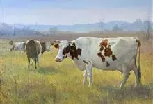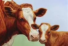 西门塔尔牛是偶蹄目牛科牛属哺乳动物。 体躯长,呈圆筒状,肌肉丰满;头较长,面宽,颈长中等,角较细而向外上方弯曲,尖端稍向上;前躯较后躯发育好,胸深,尻宽平,四肢结实,大腿肌肉发达,乳房发育好。…全部>>