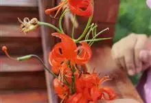 青岛百合是百合科百合属的多年生草本植物;鳞茎近球形;鳞片披针形,白色,无节;叶轮生,矩圆状倒披针形、倒披针形至椭圆形,先端急尖,基部宽楔形,具短柄,两面无毛;苞片叶状,披针形;花橙黄色或橙红色,…全部>>