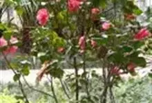 滇山茶:灌木至小乔木,有时高达15米,嫩枝无毛。叶阔椭圆形,上面干后深绿色,发亮,下面深褐色,无毛,侧脉6-7对,边缘有细锯齿。花顶生,红色,直径10厘米,无柄;苞片及萼片10-11片,花瓣红色,…全部>>