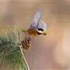 杂色山雀,是山雀科山雀属的一种动物。体重17-18克,体长125-140毫米。雌雄羽色相似。额、眼先、耳羽至颈侧乳黄色,头顶至后颈黑色,后头中央有一白斑。上背栗色,上体余部及翼蓝灰色。颏、喉黑色,…全部>>