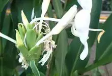姜花又名野姜花。是姜科姜花属的多年生草本植物,茎高1-2米;叶片长圆状披针形或披针形,叶面光滑,叶背被短柔毛;穗状花序顶生,椭圆形,花芬芳,白色;蒴果卵状三棱形,微黄绿色;种子鲜红色,具橘红色的假种皮。…全部>>