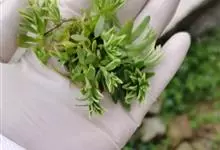 垂盆草别名石头菜、狗牙瓣、豆瓣菜等,为景天科景天属的多年生草本植物。不育枝及花茎细,匍匐而节上生根,直到花序之下;3叶轮生,叶倒披针形至长圆形,先端近急尖,基部急狭,有距;聚伞花序,花无梗,…全部>>