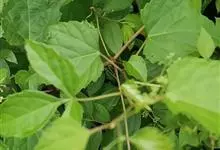 山葡萄是葡萄科葡萄属木质藤本。小枝圆柱形,无毛,嫩枝疏被蛛丝状绒毛。叶阔卵圆形,长6-24厘米;叶柄长4-14厘米,初时被蛛丝状绒毛,以后脱落无毛;托叶膜质,褐色。花梗长2-6毫米,…全部>>