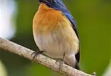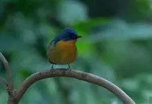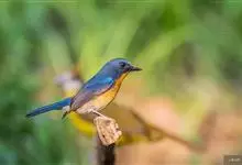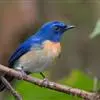 棕腹大仙鹟:体重24-28克,体长15-17厘米,是一种小型的色彩亮丽的鹟。雄鸟上体深蓝,下体棕色,脸黑,额、颈侧小块斑、翼角及腰部亮丽闪辉蓝色。与棕腹仙鹟易混淆,区别在色彩较暗。雌鸟灰褐,…全部>>