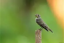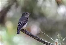 乌鹟:体重9-15克,体长12-14厘米。是一种体型略小的烟灰色鹟。上体深灰,翼上具不明显皮黄色斑纹,下体白色,两胁深色具烟灰色杂斑,上胸具灰褐色模糊带斑;白色眼圈明显,喉白,…全部>>