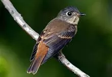 棕尾褐鹟:体重9-16克;体长109-122毫米,是一种体型略小的红褐色鹟。眼圈皮黄,喉块白,头石板灰色,背褐,腰棕色,下体白,胸具褐色横斑,两胁及尾下覆羽棕色。通常具白色的半颈环。…全部>>