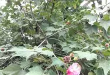 木芙蓉,锦葵科木槿属落叶灌木或小乔木。小枝上有细绒毛;叶片为卵状心形,托叶为披针形,常早落;花单生,花萼为钟形,花冠初为白色或淡红色,后逐渐变为深红色;果实为扁球形,有淡黄色的毛附着。花期8到10月。…全部>>