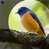 山蓝仙鹟:小型鸟类,体长13-15厘米。雄鸟额基和眼先黑色,颏橙棕色,仅颏尖为蓝黑色,喉、胸、上腹和两胁亦为橙棕色,下体白色范围较小,仅局限于下腹和尾下覆羽。雌鸟上体少黄色,颏、喉、胸概为锈红色,…全部>>