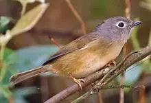 灰眶雀鹛,是画眉科、雀鹛属的鸟类。灰眶雀鹛是小型鸟类,头、颈和脸褐灰,头侧和颈侧深灰;上体和翅、尾表面橄榄褐;喉呈灰色;胸浅皮黄;腹部和胁部皮黄至赭黄,腹部中央浅淡。…全部>>