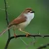金眼鹛雀是莺科、鹛雀属小型鸟类。体长16-20厘米。头顶和上体棕褐色,两翅表面肉桂红色,尾褐色具明暗相间横斑。眼周金黄色,眼先、眼上、眼下、颊以及颏、喉和上胸概为白色,其余下体茶黄色,脚橙黄色。…全部>>