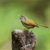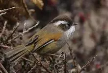 褐脸雀鹛是雀眉科、雀鹛属型鸟类,体长15-17厘米。头顶褐灰色具黑色侧冠纹,头侧皮黄褐色。上体和两翅表面橄榄褐色,尾褐色。下体浅茶黄色。虹膜灰色或褐色,嘴蓝灰色;嘴峰黑色,下嘴灰色,脚淡灰色。…全部>>